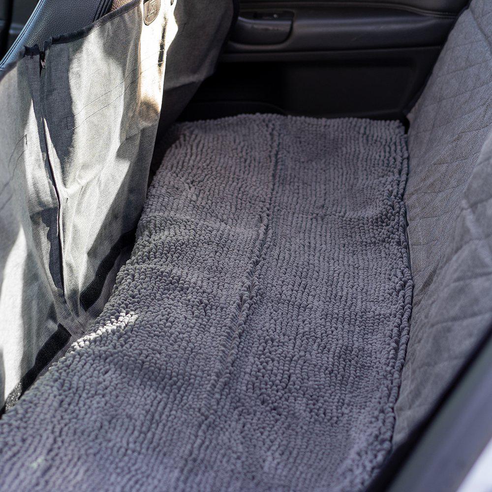 Dirty Dog Setetrekket hjelper til med å holde bilsetene fri for skitt, søle og vann fra labber og pels. Samtidig sitter hunden din komfortabelt i baksetet. Baksete-beskyttelsen beskytter også setene mot hundeklør, noe som er spesielt nyttig hvis du har skinnseter i bilen.